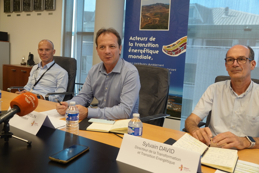 La direction de PRNC, dont son président Thibaut Martelin (au centre) nommé le 30 juin, ont dévoilé à la presse, ce mardi 7 octobre, les perspectives du site industriel de Goro. Photo Anthony TejeroLucy devrait être opérationnelle au 1er janvier 2026