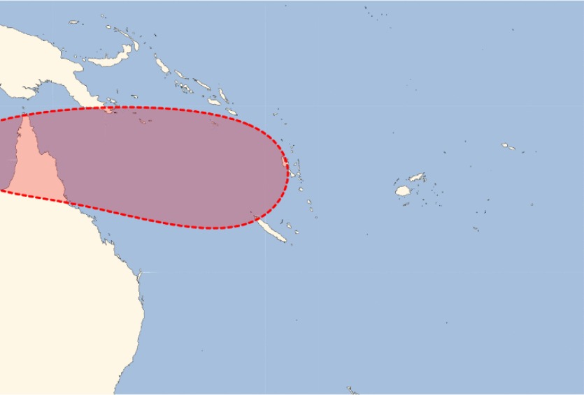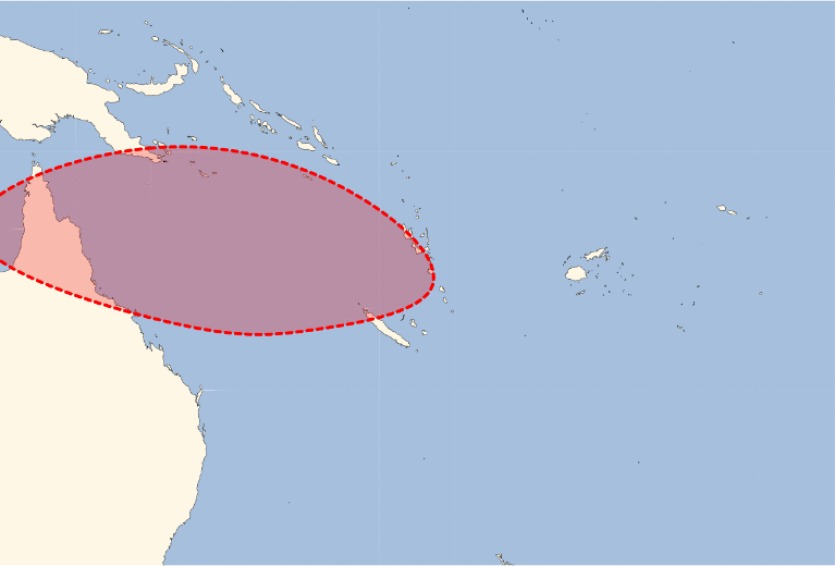 La zone de formation de la dépression demeure vaste, ce mardi 28 janvier. Capture d'écran."À l’heure actuelle, l’incertitude est encore grande sur la trajectoire et l’intensité de cette dépression tropicale potentielle", avertissent les météorologues, qui pourraient communiquer plus en détail ce mercredi selon l’évolution des conditions car, ce mardi, "il est encore trop tôt pour parler d’éventuels impacts sur la Nouvelle-Calédonie, en particulier pour le vent". Toutefois, un épisode de fortes pluies est "probable" à partir du week-end prochain et en début de semaine.
