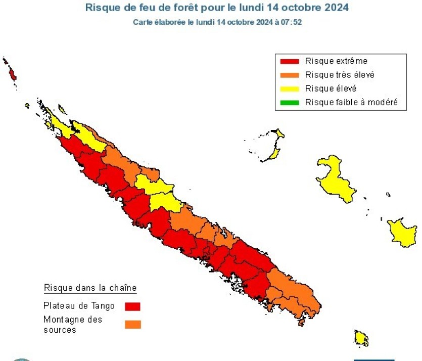 Alors que la sécheresse sévit dans le pays, en particulier sur la façade ouest, ces conditions vont également accentuer le risque de feu de forêt considéré comme "extrême" dans 15 communes, de Koumac à Boulouparis, ainsi qu’à Thio et Bélep.