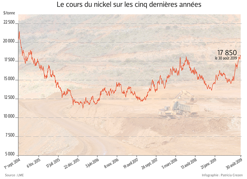 - Gros planLe cours du nickel vient de connaître, avec 10 % de hausse, l’un de ses plus impressionnants bonds de la décennie pour atteindre un prix à la tonne qui n’avait plus été vu depuis septembre 2014. Une excellente nouvelle pour la Calédonie ? Probablement, même si la prudence reste de rigueur chez les opérateurs.Dans le monde du nickel, l’information a fait l’effet d’une bombe : l’Indonésie, premier producteur de minerai de la planète, s’apprête à stopper ses exportations dès le mois de décembre. C’est le ministre de l’Energie et des ressources naturelles du plus grand archipel du mondeIl vous reste 97% de l'article à découvrir.Cet article est réservé aux abonnés.