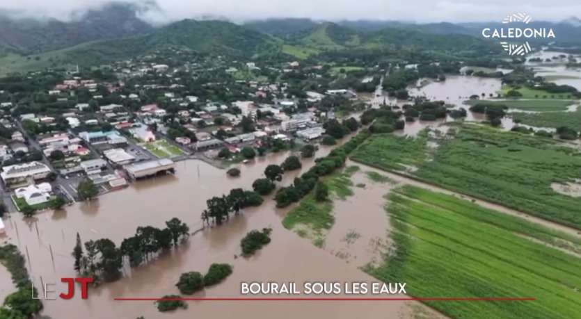 - LNC | Crée le 26.02.2026 à 08h45 | Mis à jour le 26.02.2026 à 08h46ImprimerÀ Bourail, la rivière est sortie de son lit et a inondé une bonne partie du village. Capture d'écran CaledoniaRetrouvez le journal télévisé de notre partenaire Caledonia sur notre site lnc.nc. Dans cette édition du mercredi 25 février : de nombreuses routes bloquées dans le centre de la Grande Terre en raison des intempéries, obligeant des communes à ouvrir des centres d’hébergement d’urgence ; première étape franchie pour le projet de loi constitutionnelle adopté au Sénat ; Virginie Ruffenach présente sa liste aux municipales à Nouméa ; meeting de Nina Julié, candidate au Mont-Dore ; et l’armée recrute à Koné.