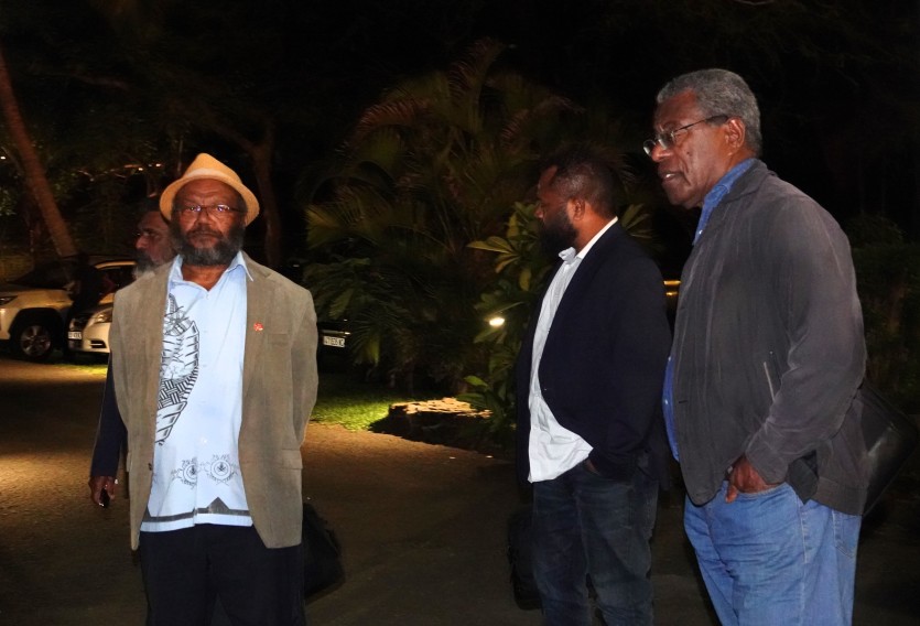- Baptiste Gouret | Crée le 28.02.2025 à 10h22 | Mis à jour le 26.03.2025 à 15h31ImprimerLa délégation de l’Union calédonienne, menée par Emmanuel Tjibaou, n’a pas voulu s’exprimer à sa sortie du haut-commissariat, jeudi soir. Photo Baptiste GouretLes délégations, toujours au grand complet, vont se retrouver ce vendredi 28 février à 15 heures pour reprendre des échanges, achevés à 20 heures jeudi soir. "Ça avance", indiquent les partenaires, qui restent très discrets sur le contenu des discussions.
