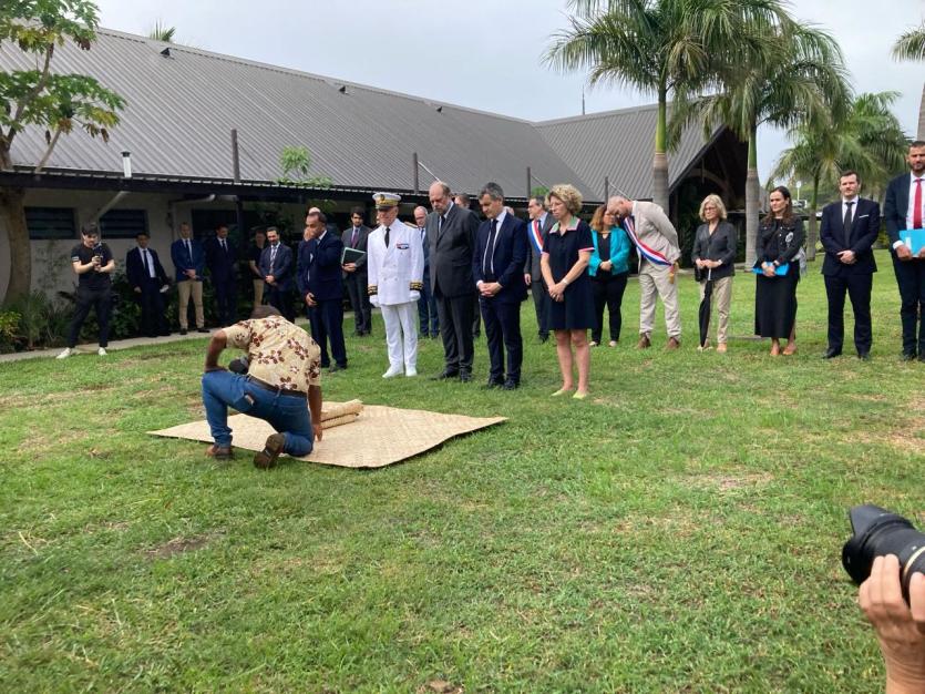 Les ministres ont été reçus au Sénat coutumier par une coutume d'accueil. Photo Baptiste Gouret.