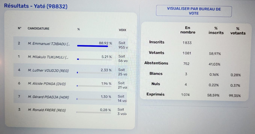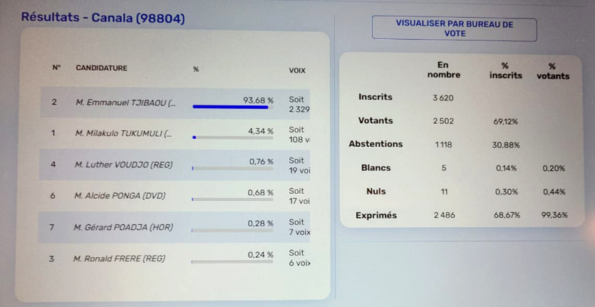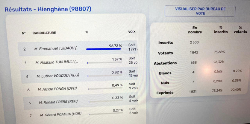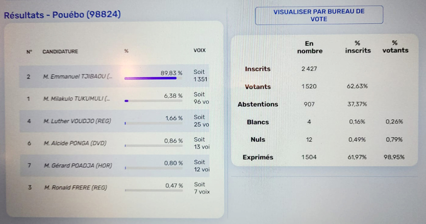 Emmanuel Tjibaou arrive en tête avec 96,72 % des voix devant Milakulo Tukumuli 1,37 % et Luther Voudjo 0,82 %. Le taux de participation s'élève à 73,24 %.