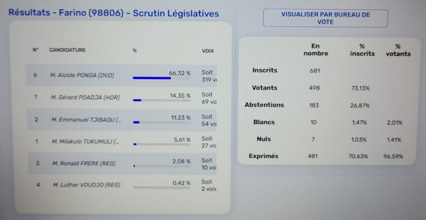 Alcide Ponga arrive largement en tête avec 66,32 % des voix devant Gérard Poadja 14,35 % et Emmanuel Tjibaou 11,23 %. Le taux de participation s’élève à 70,63 %.