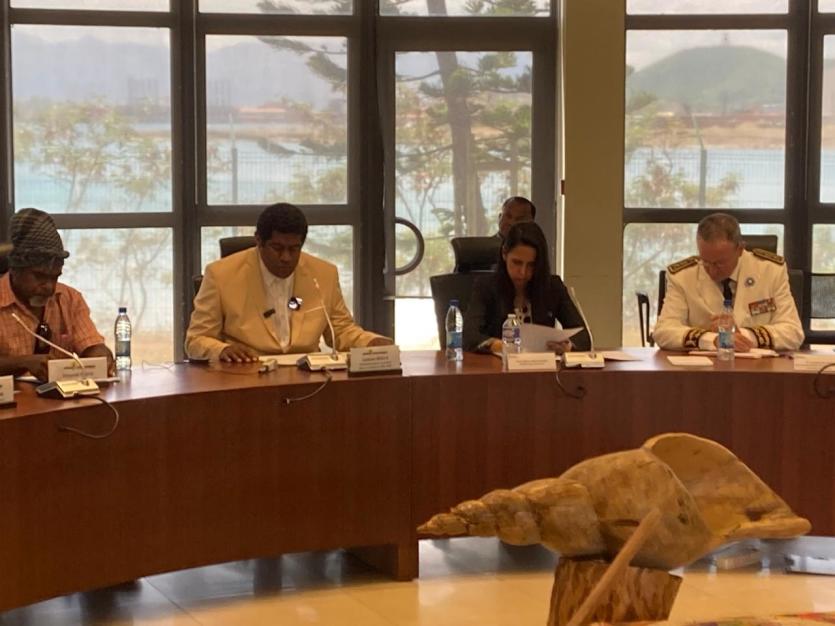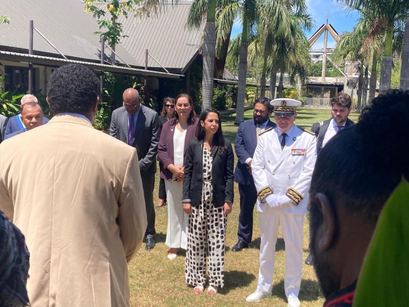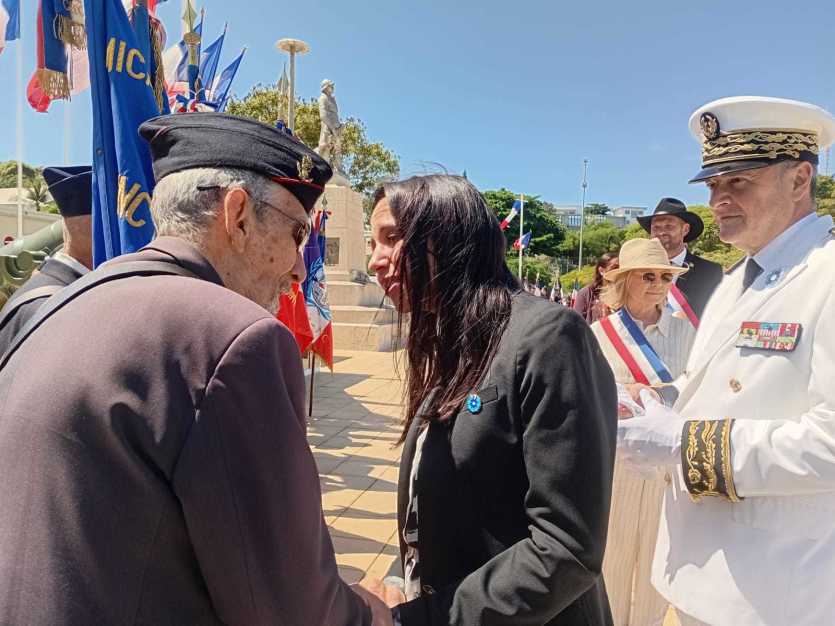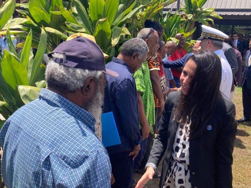 Le président du Sénat coutumier, Ludovic Boula, accueille la ministre des Outre-mer Naïma Moutchou. Photo Baptiste Gouret[9h30] Première séquence du déplacement de Naïma Moutchou, en Nouvelle-Calédonie, ce lundi matin, à 9h30. La ministre des Outre-mer commence sa visite par la traditionnelle cérémonie d'honneurs militaires sur la place Bir Hakeim.