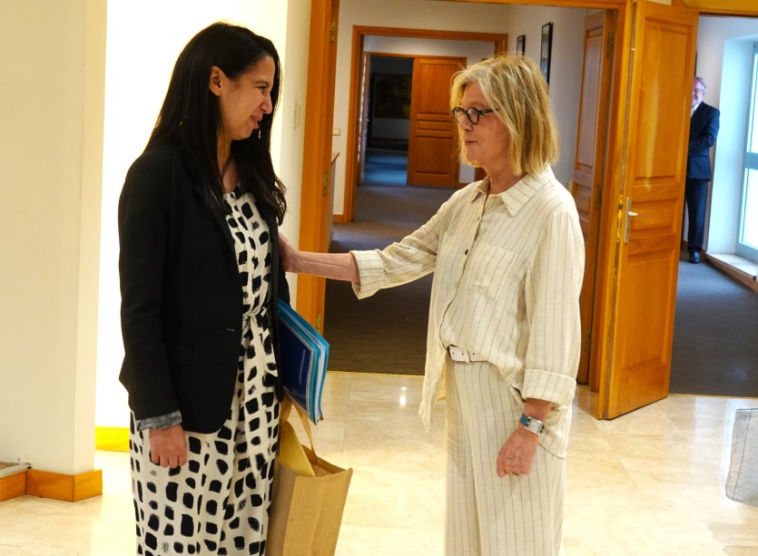 La présidente du Congrès a rencontré la ministre des Outres-mer Naïma Moutchou, ce lundi après-midi. Photo Anthony Tejero"La ministre a bien conscience que notre situation, notamment budgétaire, est catastrophique et elle compte bien nous aider", a assuré la cheffe du Congrès, qui a également évoqué le projet de loi constitutionnelle, qui pourrait être examiné à l'Assemblée nationale et au Sénat avant la fin de l'année. "J'ai souhaité savoir si le Congrès sera consulté sur ce projet de loi constitutionnelle et la ministre n'y est pas fermée", ajoute Veylma Falaeo, qui a également profité de cet échange pour présenter à Naïma Moutchou, les "projets phares" qu'elle porte au sein de l'hémicycle : l'évaluation des politiques publiques et la démocratie participative.
