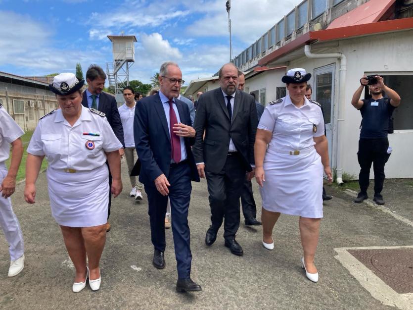Le garde des Sceaux a salué le personnel pénitentiaire. Photo Baptiste GouretInitialement prévus sur cette séquence le ministre de l'Intérieur, Gérald Darmanin et la ministre déléguée aux Outre-mer Marie Guévenoux ne sont pas présents sur place.