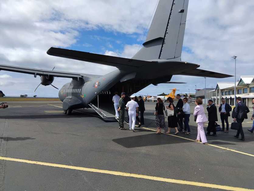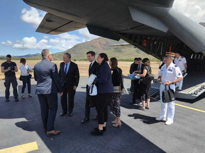 La délégation ministérielle monte à bord du casa de l'armée à destination de Koné. Photo Anthony Tejero[8h25] " La solidarité nationale a joué et continuera de jouer en Nouvelle-Calédonie ", assure François-Noël Buffet, qui a pris place à la tribune pour un discours. " Nous devons définir les modalités d'un soutien efficace de l'Etat à la Nouvelle-Calédonie. Chaque franc devra être utilisé à bon escient ", souligne le ministre des Outre-mer. " Nous partageons l'analyse qu'un soutien efficace sera essentiel. Nous partageons aussi le diagnostic que cet objectif ne pourra être atteint que par des réformes structurelles et ambitieuses. "