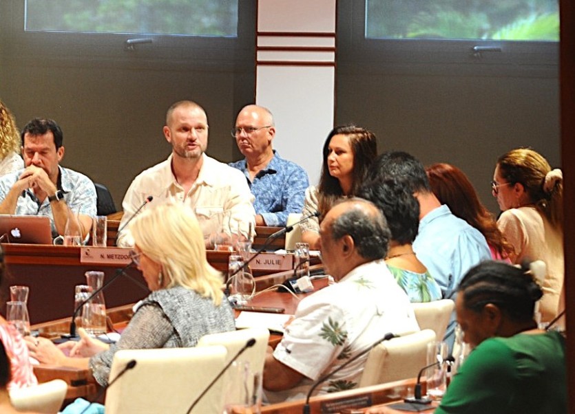 Jean Kays fait son entrée au sein de la formation Calédonie ensemble réduite à 4 membres, en raison des peines d’inégibilité de Philippe Gomès et Philippe Michel. Photo A-C.P.[15H45] Calédonie ensemble annonce s’abstenir lors du vote, regrettant l’inconnue concernant la suite du calendrier, qui ne paraît pas être tenable, juge Philippe Dunoyer, qui interroge : "est-ce que les Calédoniens vont être consultés sur la loi constitutionnelle comme prévu initialement ?". L’élu juge le projet de loi "juridiquement douteux, temporellement inadéquat et politiquement instable".