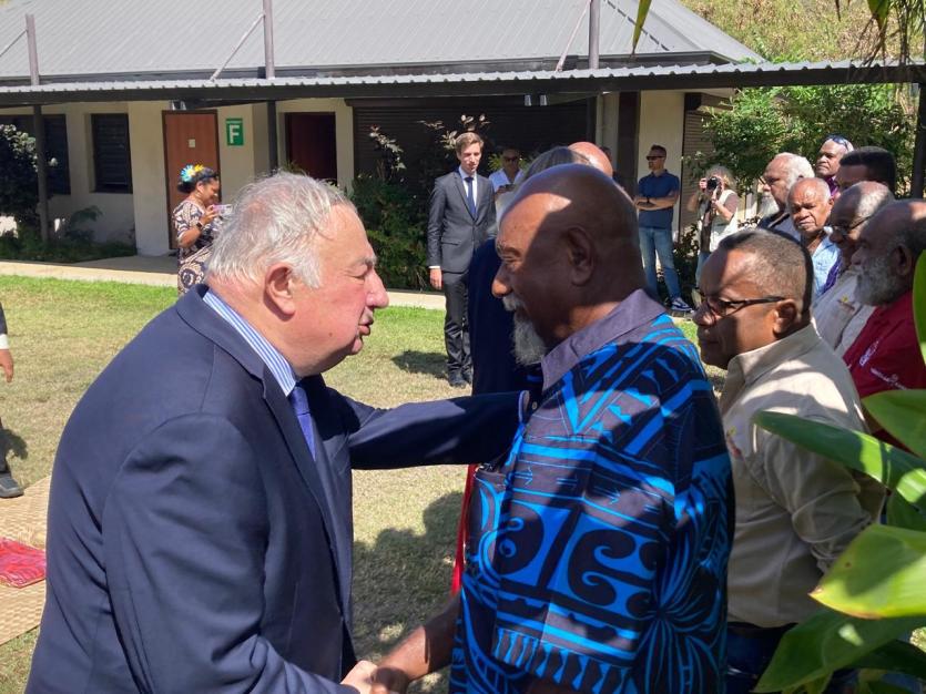 Le président du Sénat, Gérard Larcher, salue les membres du Sénat coutumier au premier jour de sa visite en Nouvelle-Calédonie. Photo Baptiste GouretYaël Braun-Pivet : " Nous sommes conscients de la responsabilité qui doit être la nôtre en tant que responsables politiques. Aujourd'hui lorsque nous venons en Nouvelle-Calédonie c'est avec ce respect, cette humilité mais aussi cette humanité. Nous devons être ceux qui faisons tout pour que ces rêves de paix et de concorde puissent devenir réalité. "