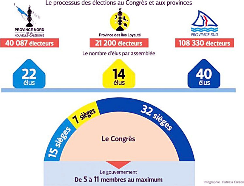 Pour Rappel, l’assemblée est composée de 54 membres qui portent le titre de " Conseillers de la Nouvelle-Calédonie ". Il est formé de la réunion d’une partie des membres des assemblées de chaque province :