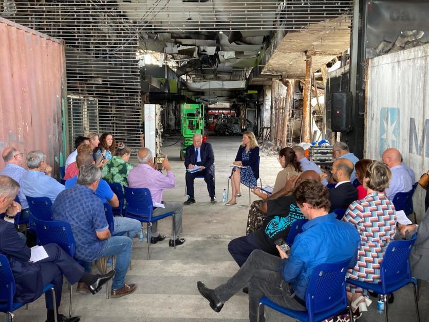Yaël Braun-Pivet est arrivée au Camp-Est, deuxième temps fort de sa journée. Photo Anthony Tejero[8h25] " Il faut reconstruire, mais ce que nous disons c’est qu’il faut des perspectives et des visions d’avenir pour permettre aux entreprises de réinvestir ", dit Yaël Braun-Pivet.