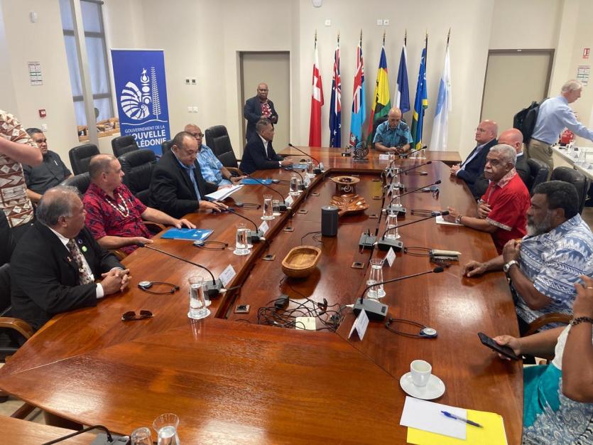 Les membres de la délégation ont rencontré le gouvernement collégial, ce lundi matin. Photo Baptiste GouretUne reconstruction et une refondation du Caillou pour lesquelles les pays membres du FIP se disent prêts à jouer pleinement leur rôle. "Ils sont prêts à participer à la reconstruction, assure Louis Mapou. Le fil conducteur de cette participation, c'est bien sûr l'intégration de la Nouvelle-Calédonie à la région. Car la Nouvelle-Calédonie, quoi qu'on en dise, connaît très peu sa région, parce qu'on a cette filiation avec la France et l'Europe qui a prévalu pendant toutes ces années. On découvre, d'une certaine manière, notre région. Le Forum des îles du Pacifique peut être un levier pour cela."