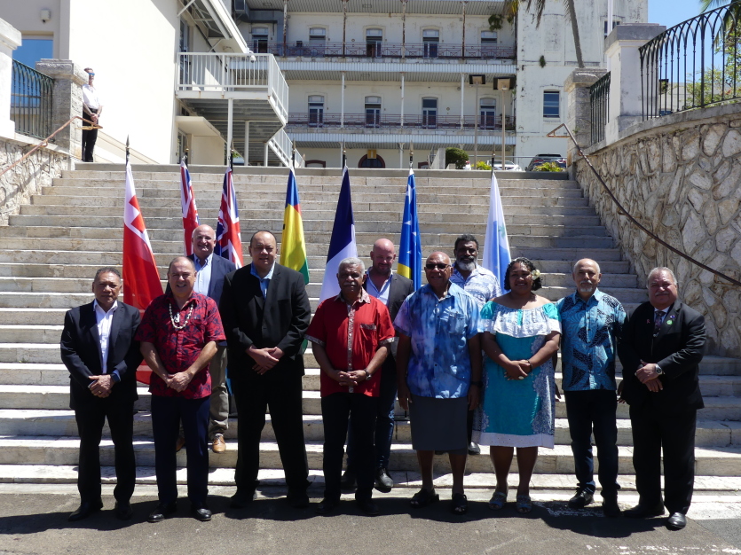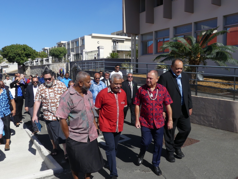 La mission d'information du FIP est actuellement au gouvernement. Photo Baptiste GouretRencontre au gouvernement avec Louis Mapou, puis avec le gouvernement collégial, entretiens avec Sonia Backès et Jacques Lalié, échanges avec le monde économique puis déjeuner avec la jeunesse calédonienne, le rythme est particulièrement soutenu ce lundi matin pour la délégation de la mission d’information du Forum des îles du Pacifique. Composée de Sitiveni Rabuka, Premier ministre des Îles Fidji, de Siaosi Sovaleni, Premier ministre des Tonga, de Mark Brown, Premier ministre des Îles Cook, de Peter-Shanel Agovaka, Ministre des affaires étrangères des Îles Salomon et de Baron Waka, Secrétaire général du Forum des îles du Pacifique, la mission est présente sur le Caillou jusqu’à demain mardi.