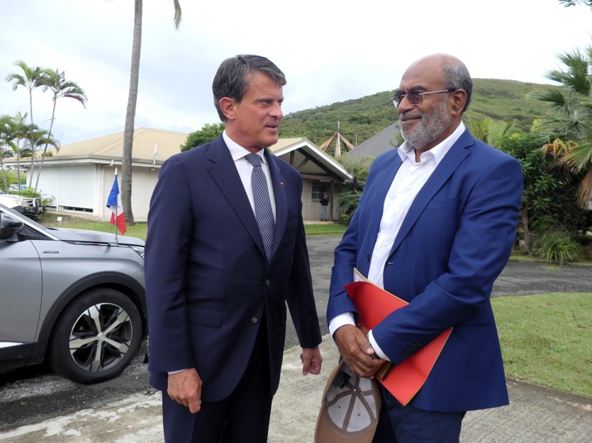 Manuel Valls et Mahe Gowe, président du Sénat coutumier, à l’arrivée du ministre au siège de l’institution, à Nouville, ce mercredi 20 août. Photo Baptiste GouretFace à ces critiques, le ministre des Outre-mer s’est livré à un exercice qu’il va devoir reproduire tout au long de la semaine : convaincre les indépendantistes qui veulent tourner la page de Bougival. Cet accord "est un pari inédit de la confiance et de l’avenir", a redit Manuel Valls aux sénateurs, en listant les grands principes qu’il porte (État de Nouvelle-Calédonie, nationalité calédonienne…). Le mécanisme de transfert des compétences régaliennes, vu comme une porte fermée à l’indépendance, "oblige simplement à trouver des majorités parfaitement atteignables" au Congrès, et à "sortir du confort habituel de la confrontation pour chercher le consensus".