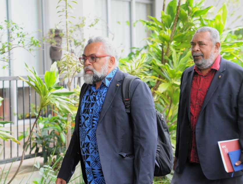 Adolphe Digoué, à gauche, et Jean-Pierre Djaïwé, au premier plan, président du groupe UNI au Congrès. Photo A.-C.P.