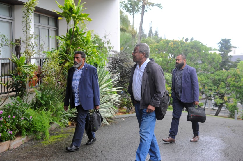 L’ensemble des formations politiques du territoire assises à la même table, ce matin. Photo A.-C.P.Le retour des trilatérales