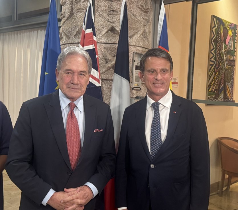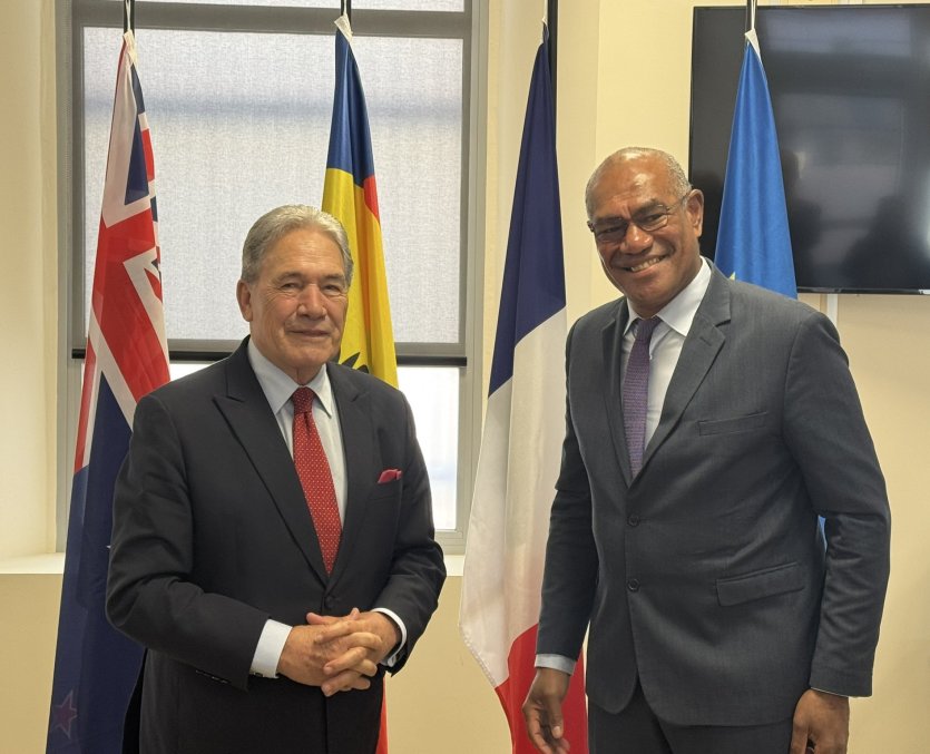 - Baptiste Gouret | Crée le 02.05.2025 à 16h57 | Mis à jour le 02.05.2025 à 16h57ImprimerLe ministre des Outre-mer français, Manuel Valls, a reçu le vice-premier ministre néo-zélandais, Winston Peters, au haut-commissariat, jeudi 1er mai. Photo Consulat de Nouvelle-ZélandeWinston Peters était en déplacement sur le Caillou, jeudi 1er mai et vendredi 2 mai. Il a notamment rencontré Manuel Valls, afin de rappeler le soutien de son pays à la poursuite des discussions sur l’avenir institutionnel calédonien. Une visite "constructive et positive", où il a également été question de développement économique, d’ingérence étrangère et d’aide humanitaire.