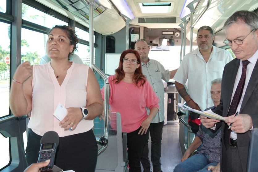 Naïa Wateou, en octobre dernier, lors de l’annonce du financement de l’État de 578 millions de francs pour accélérer les travaux de réparation du réseau Tanéo, qui n’opère plus que 8 lignes, contre 30 auparavant. Photo Anthony TejeroPromotion de l’égalité femmes hommes