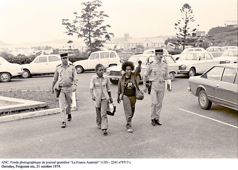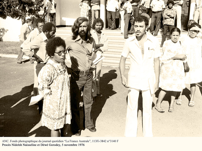En 1973, de retour au pays, Déwé Gorodey intègre les foulards rouges, au côté de Nidoish Naisseline. Photo LNCDe retour au pays, en 1973, Déwé Gorodey intègre les Foulards rouges, puis l’année suivante, le Groupe 1878, en hommage à la révolte du grand chef Ataï. Ce mouvement créé par des jeunes de la Grande Terre, dont Elie Poigoune, est contestataire, revendicatif. L’axe premier, " les terres volées ". Les événements français de Mai 68 sont un des éléments déclenchants du réveil kanak. La native de Ponérihouen a " un tempérament fougueux, elle n’a pas la langue dans sa poche " selon ses copains de l’époque. Au point d’être emprisonnée trois fois, au Camp-Est, en 1974 et en 1977.