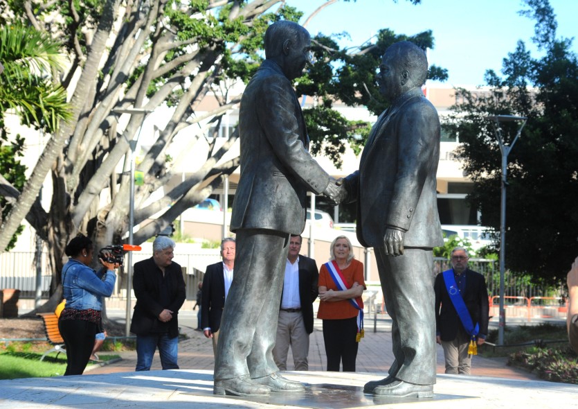 La cheffe de file des députés RN à l’Assemblée a souhaité se rendre place de la Paix, devant "ce monument qui est devenu le symbole de la réconciliation, le symbole de l’avenir partagé de la Nouvelle-Calédonie". Photo A.-C.P.Changer de méthode