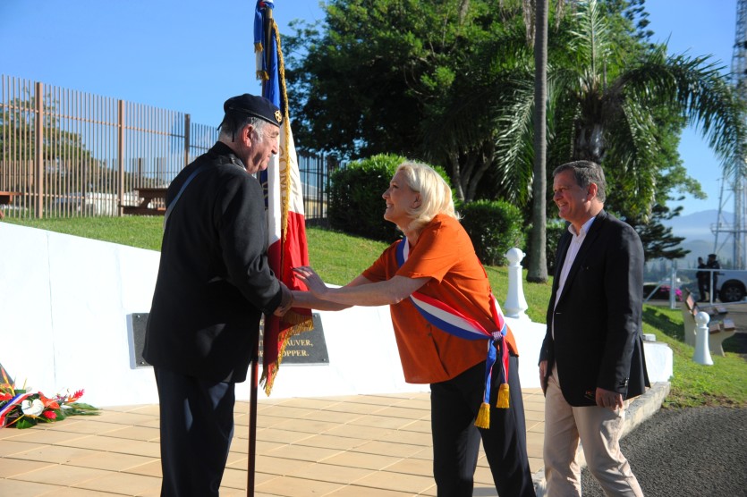 Marine Le Pen s’est rendue à la Croix de Lorraine ce mercredi matin vers 8h30 afin de procéder à un dépôt de gerbe. "Nous avons évidemment rendu hommage aux gendarmes qui ont été tués lors des émeutes." Photo A.-C.P.Agriculture, nickel, exploitation des fonds sous-marins