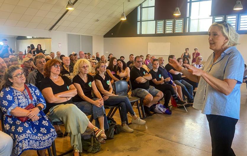 La présidente du Rassemblement national a débattu avec le public lors d'échanges parfois houleux. Photo Julien Mazzoni"Projets structurants", "formation adaptées aux besoins des entreprises", "mini-centrales nucléaires pour assurer les besoins énergétiques", "véritable rééquilibrage économique", "tirer le bilan du transfert des compétences", "il faut passer à la vitesse supérieure", assène la députée, mettant en avant "les peurs existentielles de chaque camp, mauvaises conseillères", qui empêchent d'avancer.