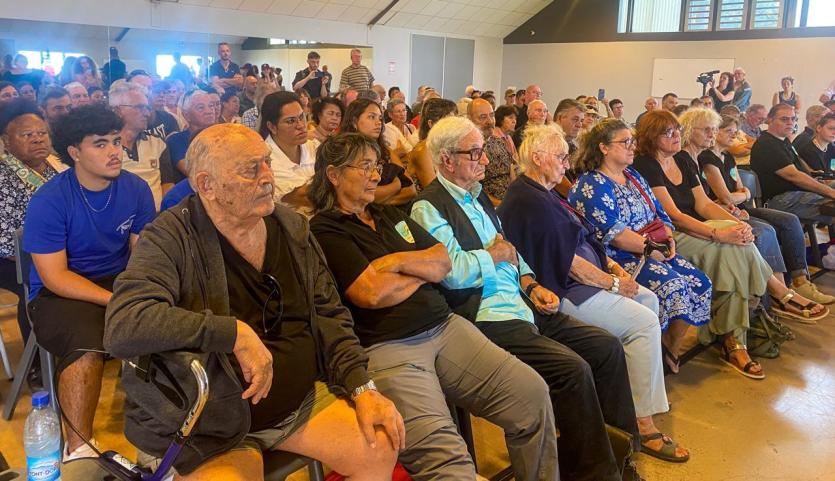 Environ 150 personnes étaient présentes dans la salle des communautés, vendredi 29 mai. Photo Julien MazzoniLe public désapprouve. "On a voté trois fois non et ils refusent la démocratie !" "Quand bien même vous voteriez trente deux fois non, pensez-vous vraiment que vous empêcherez les Kanak de vouloir leur indépendance ?, rétorque Marine Le Pen. Ce que je propose c'est d'organiser une autre consultation dans quarante ans, le temps de convaincre que la prospérité et la sécurité de la Nouvelle-Calédonie sont dans la France".
