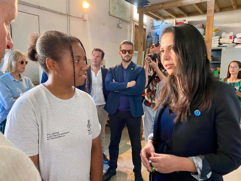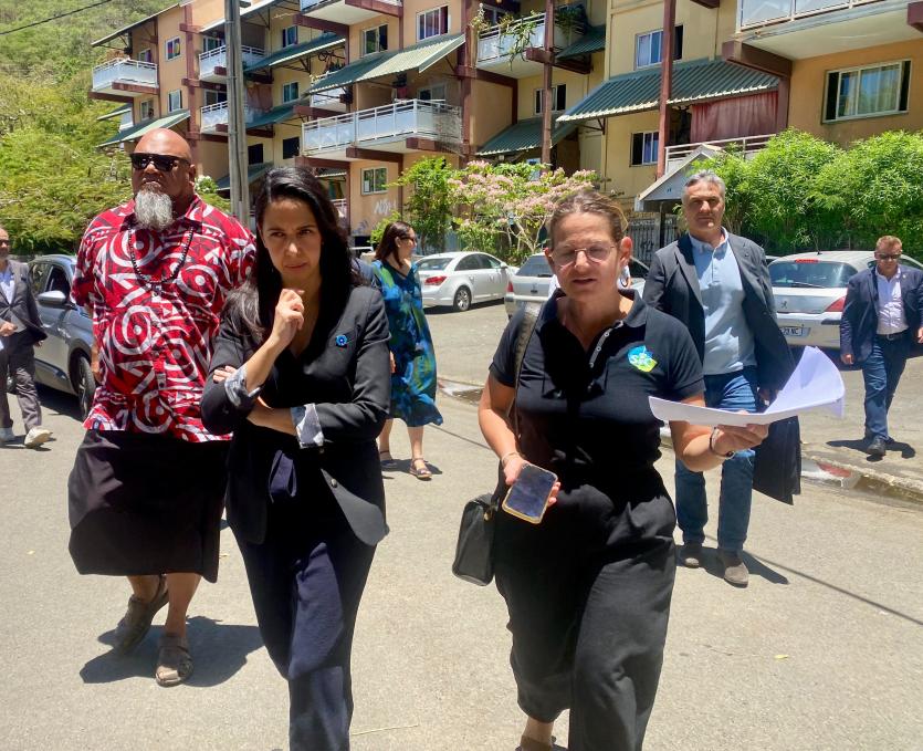 À Tindu, Naïma Moutchou a échangé avec des habitants de ce quartier populaire de Nouméa. Photo Julien MazzoniMERCI DE VOUS IDENTIFIER