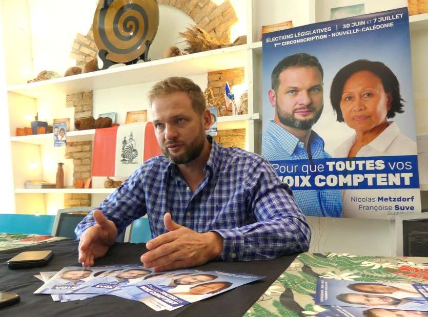 - Propos recueillis par la rédaction | Crée le 04.07.2024 à 07h48 | Mis à jour le 04.07.2024 à 07h48ImprimerDéputé sortant dans la seconde circonscription, Nicolas Metzdorf est arrivé en tête dimanche dernier, dans la première circonscription, où il a recueilli près de 39,81 % des suffrages. Photo Baptiste GouretArrivé en tête dans la première circonscription avec 39,81 % des suffrages au premier tour, Nicolas Metzdorf entend convaincre "tous les partisans du maintien de la Calédonie dans la France" et "du respect de la démocratie" pour ce second tour face à sa rivale Omayra Naisseline, qu’il devance de moins de 2000 voix. Le candidat loyaliste appelle également les abstentionnistes à se mobiliser face à un camp qui "exige l’indépendance".