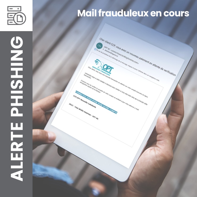 - L'OPT a indiqué qu'un nouvel e-mail frauduleux dont l'objet est « Services financiers » émanant d'une adresse de « OPT NC », circule dans les boîtes mail des Calédoniens pour inciter les clients à se connecter sur un site internet en cliquant sur un lien. « Nous vous confirmons queIl vous reste 58% de l'article à découvrir.Cet article est réservé aux abonnés.