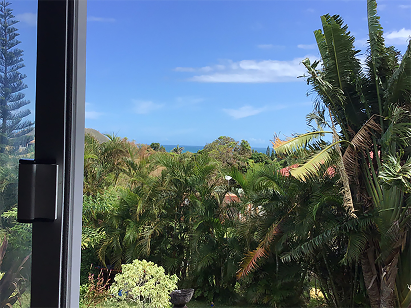 Confinement depuis sa fenêtre - appel internautesToujours à Lifou, cette fenêtre pourrait facilement être confondue avec un tableau tellement le panorama qui se dessine derrière est paradisiaque. Cet habitant a pris ce cliché à Luengoni, connue pour ses belles plages de sable blanc.