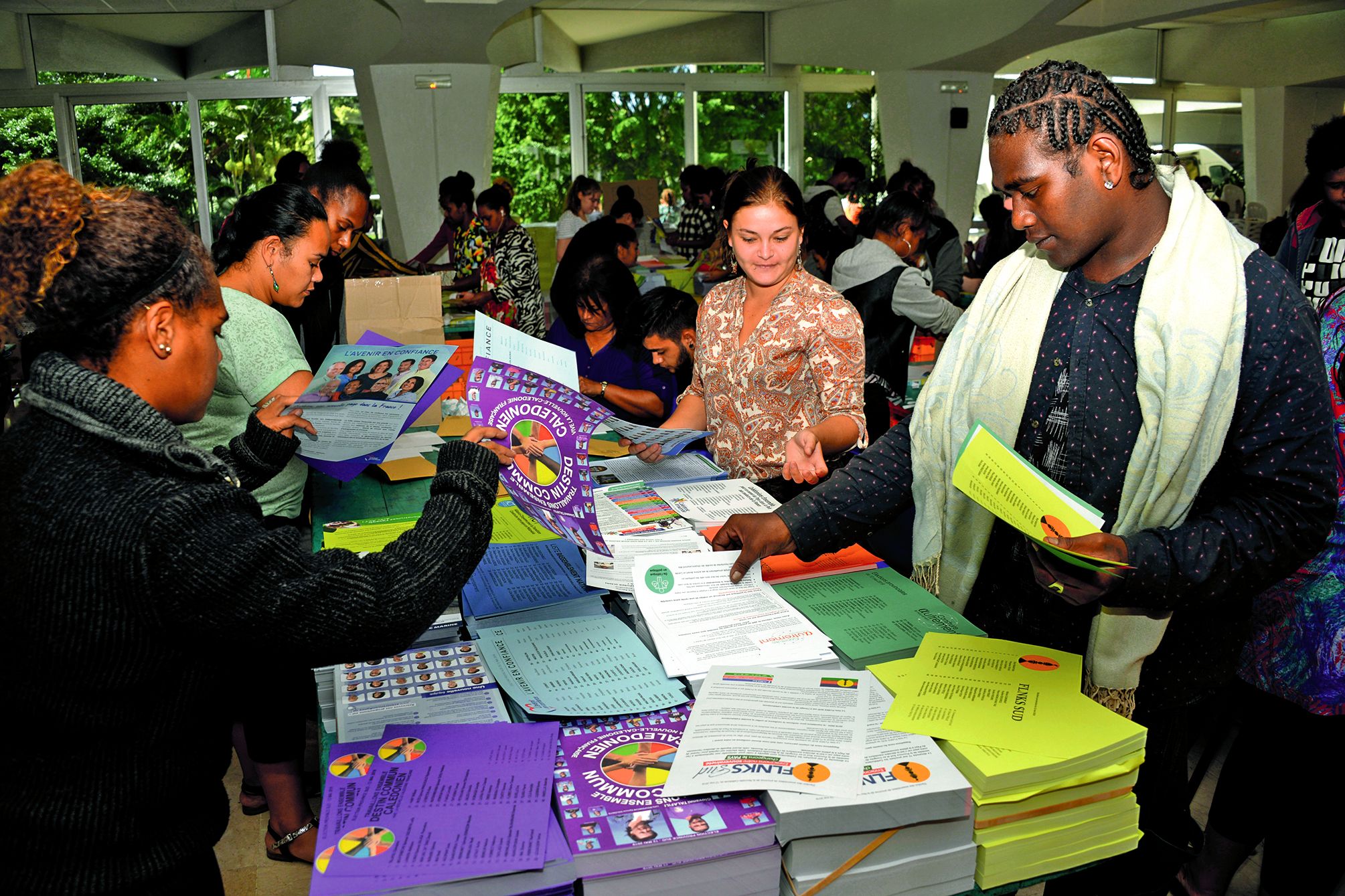 - POLITIQUE. La mise sous pli de la propagande électorale a commencé, hier, à la mairie de Nouméa. Pour les 200 jeunes mobilisés, c’est l’occasion de s’intéresser à la campagne.170 000 enveloppes, 3 millions de feuilles, 40 tonnes de papier… Ces chiffres à donner le tournis sont ceux de la mise sous pli de la propagande électorale. Depuis hier, la salle d’honneur de la mairie de Nouméa croule sous les piles de documents. Pendant trois jours, deux cents jeunes etIl vous reste 90% de l'article à découvrir.Cet article est réservé aux abonnés.