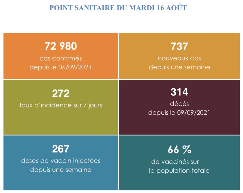 - Dans son bulletin hebdomadaire sanitaire, le gouvernement indique que 737 cas positifs ont été confirmés depuis une semaine. Les cas positifs comptabilisés s'élèvent aujourd'hui à 72 980. Le nombre de cas actifs est de 1 225, soit bien moins que la semaine dernière, où 2 041 cas actifsIl vous reste 41% de l'article à découvrir.Cet article est réservé aux abonnés.