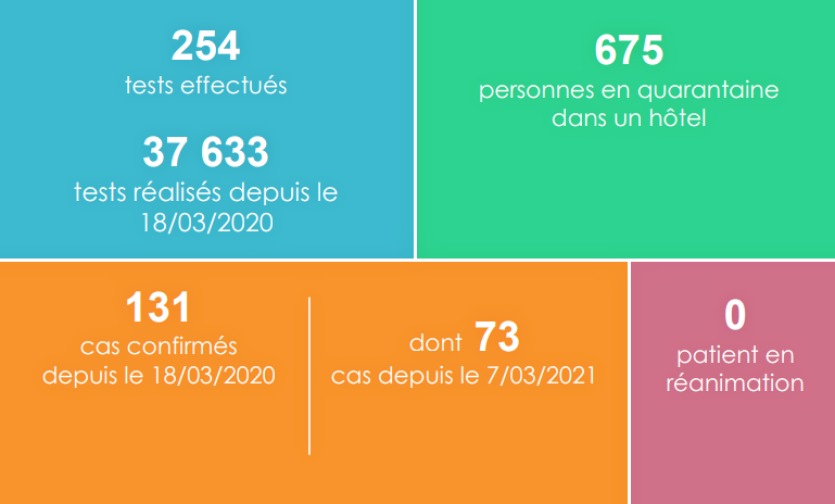 - 254 tests de dépistage ont été effectués mardi 20 juillet. Ils ont révélé deux nouveaux cas positifs. Il s'agit une fois de plus de deux personnes arrivées par le vol du 6 juillet, en provenance de Paris-Tokyo, qui devaient se rendre à Wallis-et-Futuna après une quarantaine en NouvelleIl vous reste 72% de l'article à découvrir.Cet article est réservé aux abonnés.