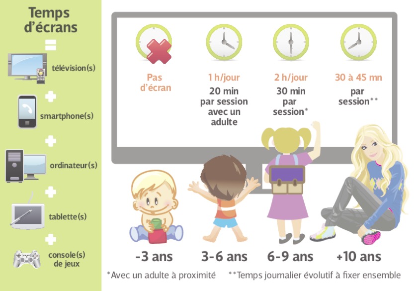 - Prévention.La période du confinement est propice au temps passé devant la télévision, les smartphones ou les consoles de jeux. Voici quelques pistes pour s'organiser et apaiser d'éventuelles tensions.Que les parents se rassurent : un mois de confinement ne va pas rendre les enfants et les adolescents accros aux écrans : « La dépendance aux écrans est reconnue par l'Organisation mondiale de la santé. Mais on ne parle d'un trouble de l'usage qu'au bout de douze mois, » préciseIl vous reste 95% de l'article à découvrir.Cet article est réservé aux abonnés.