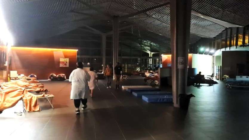 D’autres ne parviennent pas à en repartir. Le hall d’entrée a été transformé en zone d’accueil pour des patients qui n’ont plus besoin d’être pris en charge mais qui ne peuvent pas rentrer chez eux. Des lits de camp ont été installés dans ce "faré" et les personnes accueillies sont nourries et ont accès "au minimum pour l’hygiène". La zone accueille environ une cinquantaine de personnes en continu, avec "une vingtaine d’entrées et de sorties par jour".