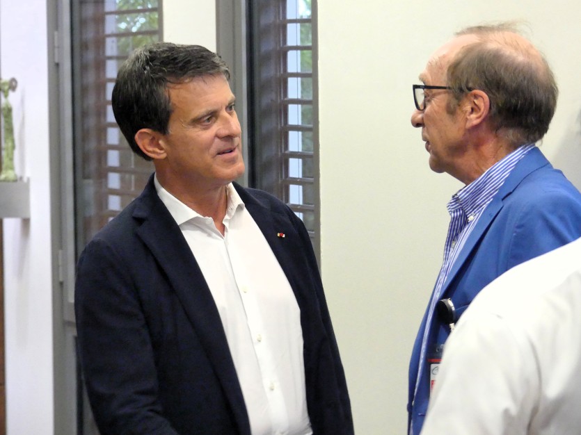 Manuel Valls salue Joachim Tutugoro (au centre), directeur des hôpitaux du nord, lundi 5 mai au Médipôle. Photo Baptiste Gouret"Les problèmes d’insécurité et d’attractivité qui ont été évoqués sont intimement liés à l’instabilité de la situation politique", estime Manuel Valls, renvoyant ainsi la solution à un accord. "Mais au-delà, ce qui m’inquiète, ce sont les risques d’un effondrement du système et d’une crise sanitaire", alerte le ministre d’État.
