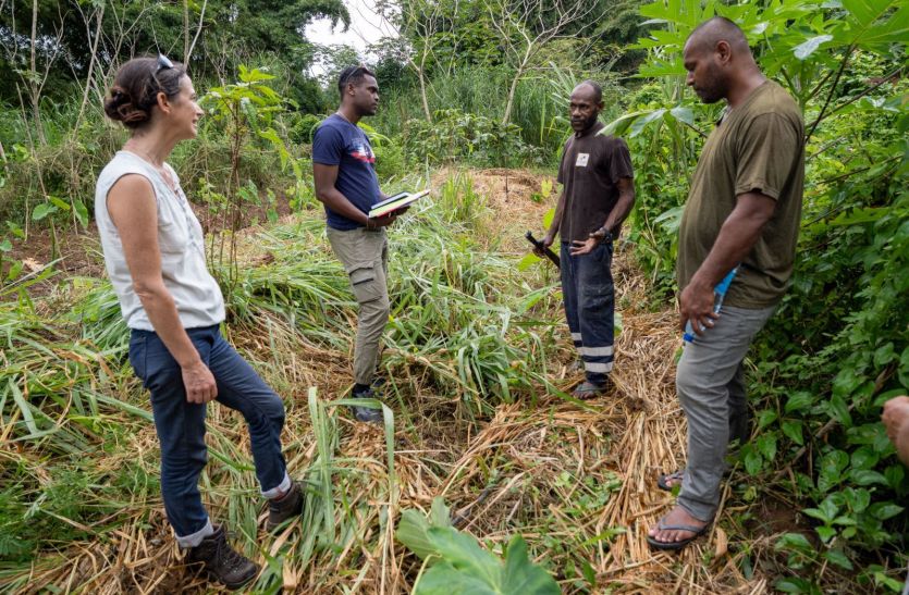 Les chercheurs de l'IRD en mission sur le terrain à Canala dans le cadre du projet CLIPSSA. Photo. © IRD - Jean-Michel BoréLa situation actuelle ne permet toujours pas aux chercheurs de se rendre sur le terrain, des sites restent difficiles d'accès à cause des barrages. Certains projets sont pour le moment reportés à plus tard ou misent en pause. " Les chercheurs qui interviennent sur le milieu forestier ou qui sont en contact avec la population ont plus de difficulté, leurs missions sont à l'arrêt tant que les conditions de sécurité ne sont pas réunies ", précise France Bailly, représentante de l'IRD en Nouvelle-Calédonie. " Les relations n'ont pas été interrompues avec les communautés mais au niveau des transports et des séjours, on hésite encore à leur permettre d'y aller ", complète-t-elle.
