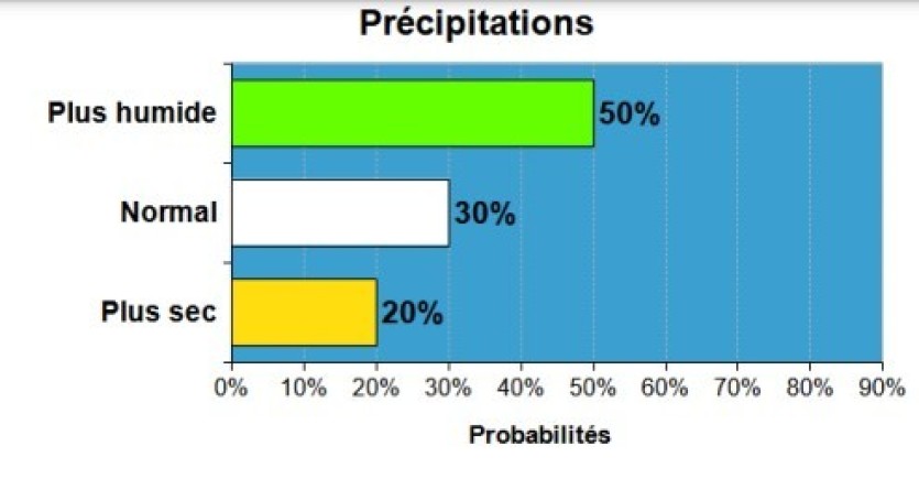 Dans le détail, Météo France NC indique qu’un scénario plus humide est privilégié (avec une probabilité de 50 %) pour le prochain trimestre, accompagné d’une "très forte probabilité" pour que le mercure soit plus haut que la normale.