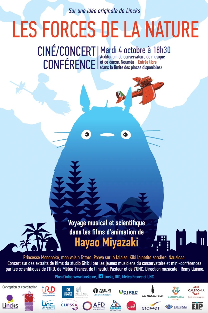 - Transmettre des connaissances scientifiques pointues sur la nature calédoniennes grâce au génie des films d'animation de Miyazaki. C'est l'objectif de l'agence de vulgarisation scientifique calédonienne Lincks, qui organisera mardi, de 18h30 à 20h30, en l'auditorium du Conservatoire de musiqueIl vous reste 74% de l'article à découvrir.Cet article est réservé aux abonnés.