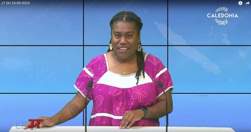 - Caledonia | Crée le 25.09.2024 à 10h14 | Mis à jour le 25.09.2024 à 10h15ImprimerLina Waka-Ceou présente le journal télévisé de Caledonia de ce mardi 24 septembre. Photo CaledoniaRetrouvez le journal télévisé de notre partenaire, Caledonia, sur notre site lnc.nc. Dans cette édition du mardi 24 septembre, Le 24 septembre, une fête qui divise à Nouméa ; La déclaration unilatérale des chefferies signée à Maré ; " Rendre hommage à notre peuple " ; À Koné, les équipes de la Sécurité civile sont renforcées ; Un gâteau à base de farine de manioc.