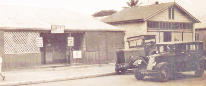 La devanture du studio photo dans les années 1940. Photo DRLors de ses reportages en Brousse, il partait avec sa voiture, la Licorne, accompagné de son neveu Chi, venu de Hanoï pour le rejoindre en 1938. Chi m’a raconté combien notre père était populaire et très connu. Beaucoup de gens l’interpellaient et le saluaient en cours de route. Il arrêtait la voiture sur le bord du chemin pour aller dire bonjour et discuter avec les cantonniers.