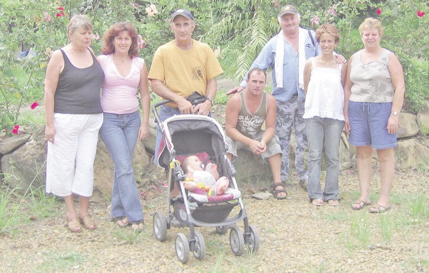 Sarraméa, 2007. Lors de la deuxième visite des cousins vosgiens: Michèle, à gauche, et Yves, troisième à droite, étaient venus voir Dominique, son père André, le bébé Christie, Arnaud, Cathy Chevrier ainsi que Ginevra Ollivier. Photo DR" À la fin des années 1990, ma cousine Catherine a remonté la trace des Chevrier jusqu’à leurs terres d’origine, les Vosges. Nous nous sommes dit qu’il y avait des chances pour que des Chevrier soient encore dans le coin. Nous avons contacté le journal de la région, l’Est républicain, et nous avons fait une demande de parution dans la rubrique généalogique. Et une Chevrier a répondu ! C’était Carole, une lointaine cousine. Nous avons beaucoup échangé à distance avec elle et avec ses parents, Michel et Michèle. Ils nous ont raconté l’histoire de leur branche, le travail de Michel dans les hauts fourneaux de Nancy, et nous avons décidé de nous rencontrer. Ils sont venus les premiers, en 2003 et en 2007, puis nous sommes allés là-bas en 2009. Nous avons été reçus comme des princes, ils sont d’une gentillesse infinie. Et les Vosges en hiver, sous la neige, c’était tellement beau ! Par contre, je n’ai jamais eu aussi froid ! Nous sommes allés voir la grange familiale de Vagney, que Carole avait réussi à retrouver, c’était très émouvant. J’espère que nous pourrons y retourner un jour. Nos cousins sont revenus nous voir en 2011."