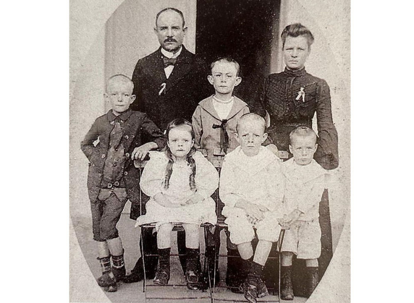 La famille Dolbeau à un mariage à Nakéty. Jules et Lucie sont entourés de cinq de leurs six enfants : Julien, Constant, Cyprien, Michel et Émilie. Photo DRIl peut donc s’installer comme ferblantier. Comme à Paris, Marie travaille. Elle tient une épicerie de détail.