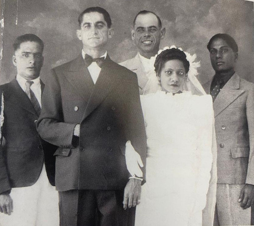 Emile Avelot (1907-1992) et Francia Saminadin, le jour de leur mariage le 27 avril 1940 à Nouméa. De leur union naissent Huguette le 8 mars 1941, Yvette le 15 avril 1942 et Emile le 11 avril 1943. Francia décède en août 1943, laissant trois jeunes enfants dont un nourrisson. Virginie, la mère de Francia, va momentanément s’occuper d’eux jusqu’à son décès en 1946. Photo DRLe couple Avelot a quatre enfants entre 1874 et 1879 : Emile, Augustine, Auguste, qui décède à un an en 1878, et Jean-Baptiste. Tous naissent à Nouméa où Gabriel exerce son métier initial de serrurier mécanicien. La famille habite alors près de l’actuel commissariat, rue de Sébastopol.