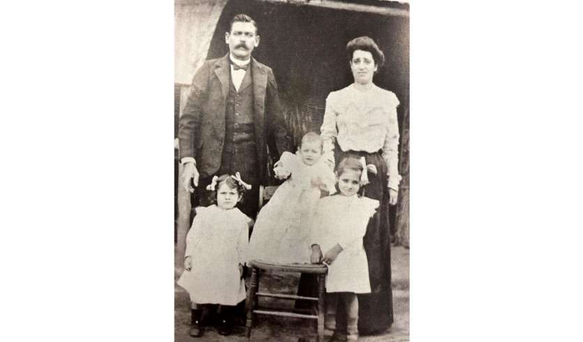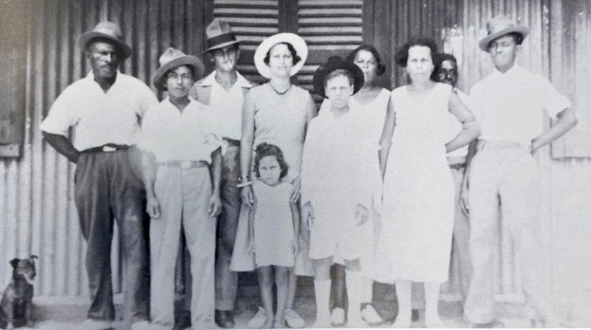 La famille de Paul Avelot en janvier 1937 : Paul tient Louis (7 mois) sur ses genoux. À sa gauche, sa femme Antoinette puis la mère de celle-ci. Andrée, leur fille aînée, est debout entre ses parents. La mère et la grand-mère tiennent les jumelles, Claudette et Odette (18 mois). Il manque leur dernier fils, Etienne. Photo DRJean-Baptiste, mon grand-père, le fils de l’ancien forçat, devient mécanicien sur les voies ferrées. Il travaille notamment sur la ligne Païta-Nouméa et à Karembé.