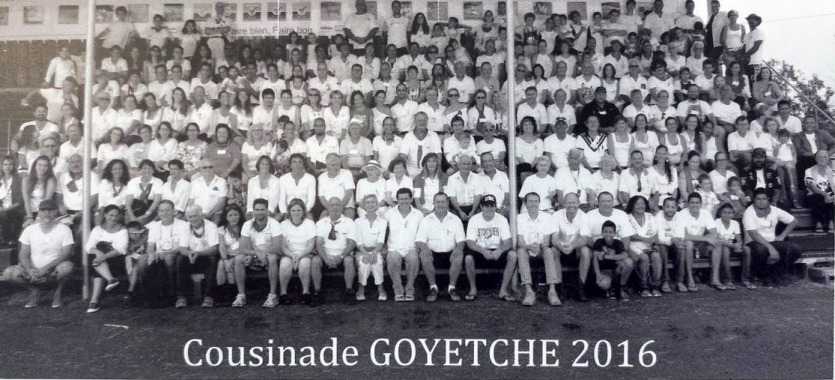 "1873-2017, 144 ans d'histoire calédonienne. Un couple de forçats condamnés et huit générations plus tard, 520 descendants. Le 5 novembre 2016, plus de 200 personnes se sont réunies à l'hippodrome de Téné pour marquer le 180e anniversaire de la naissance de Dominique Goyetche, notre aïeul, dans son Pays basque, et pour marquer les 140 ans de sa mise en concession rurale à Bourail. C'est l'origine de l'enracinement sur cette terre calédonienne. C'est le début de l'histoire de notre famille. " Photo DRAujourd'hui, la famille Goyetche compte huit générations depuis Dominique, et Pierre, son fils, est à lui seul à l'origine de près de 500 descendants. Yves Mermoud constate que le non-dit commence tout juste à s'effacer. " Cela fait vingt-six ans que je travaille sur la mémoire du bagne. Ma mère, arrière-petite-fille de transporté, ne s'y intéressait pas. Mon père descendait d'un colon libre, et il n'hésitait pas à le lui rappeler pour la rabaisser. Je pense et j'espère que ce genre de considérations est derrière nous. "