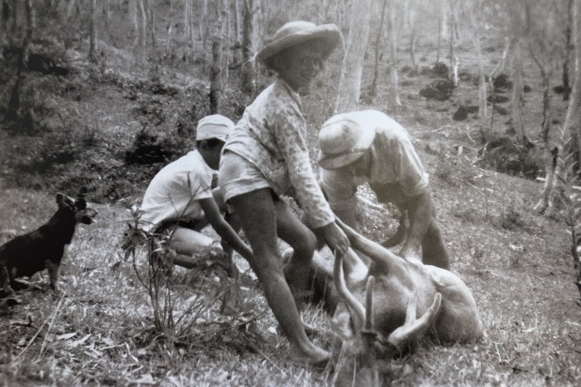 Pouembout, vers 1960. Jacqueline Gibert, la mère de Laura. La voici aidant les hommes à soccuper d'un cerf fraîchement abattu. Depuis la grande époque de son grand-père Maxime, la chasse est une activité sacrée chez les Gibert.Les Gibert, prochain chapitre